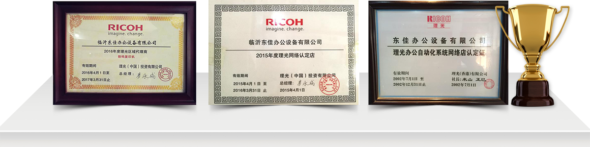 臨沂東佳辦公設備有限公司成立于1999年,是一家專賣臨沂理光打印機,臨沂復印打印一體機等理光辦公設備及專業維修服務于一體的臨沂復印機租賃服務性公司,在多年來的努力拼搏下,公司發展的發展突飛猛進,自2002年至今連續十九年的理光辦公設備代理商,先后獲得了理光(我國)授權臨沂總代理,理光數碼復印機,一體機臨沂總代理,理光辦公設備網絡認證店,理光辦公設備維修認定店等產品代理資質及維修資質。并配備了大量理光數碼辦公設備原裝零配件及其系列的純正耗材。
